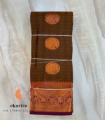 Not heavy, not plain — just perfectly balanced. This Champa saree in mahendi green features a golden zari border and delicate woven motifs. Lightweight and easy to wear, it combines comfort with elegance, making it a versatile and stunning drape from the Champa collection.